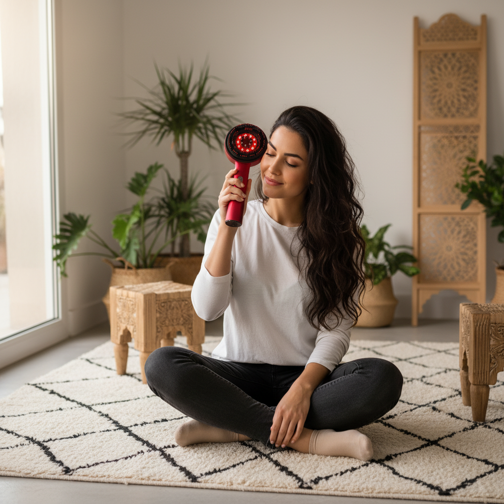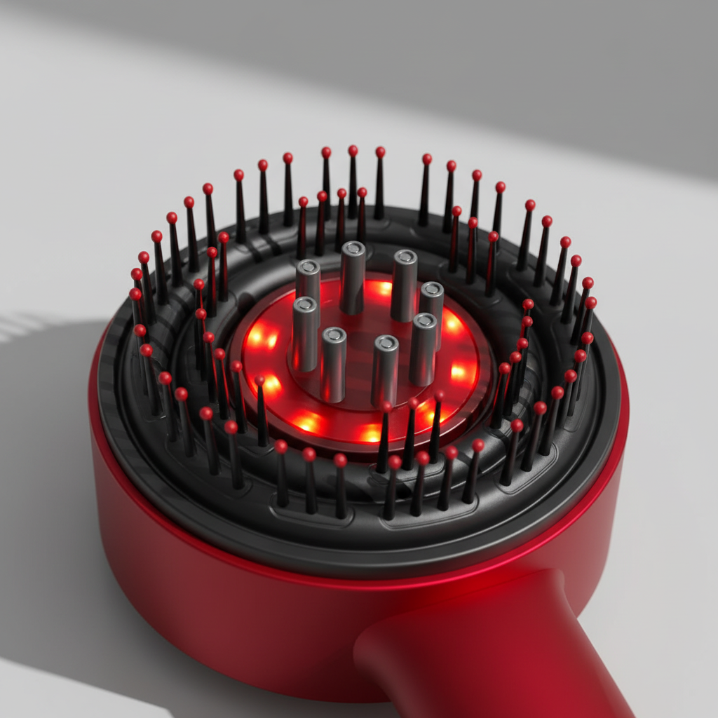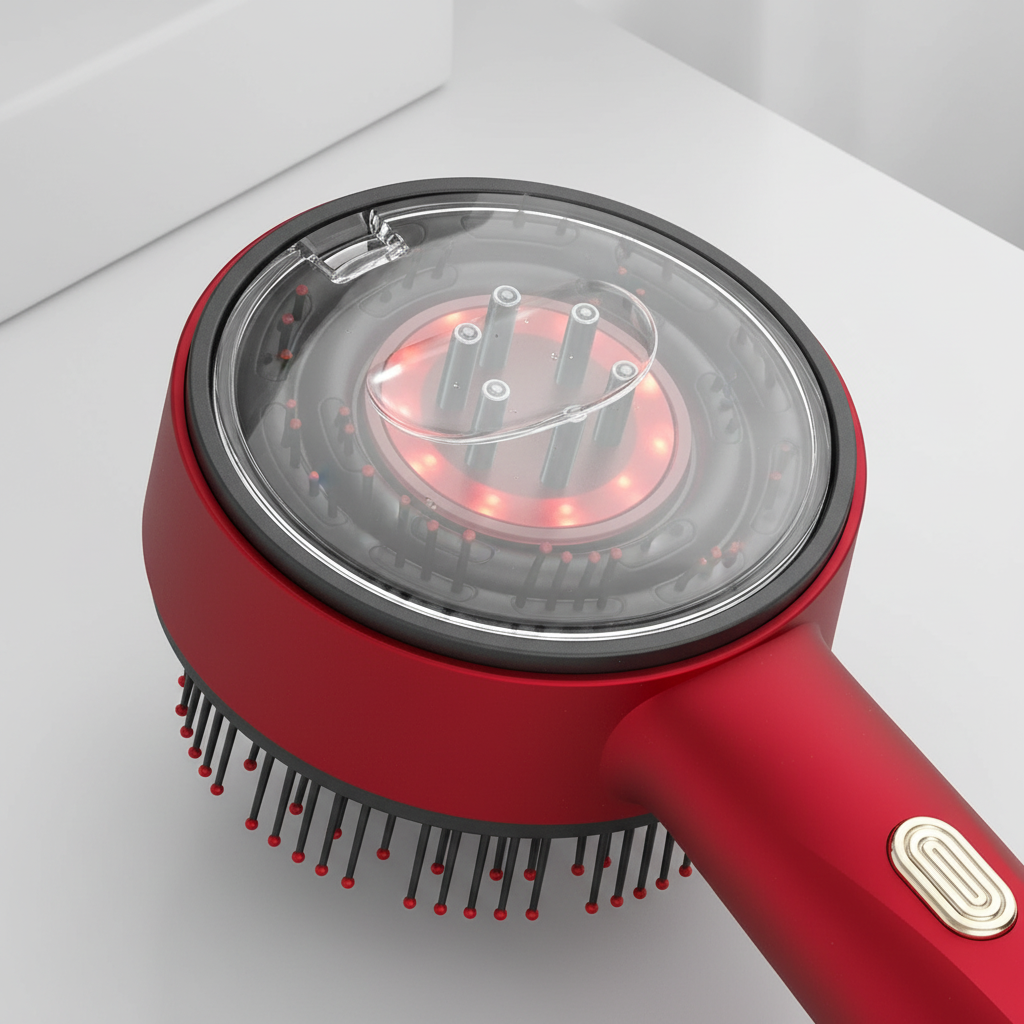 Stimulez et détendez votre cuir chevelu avec cette brosse chauffante à LED rouge, rechargeable USB, 3 modes de massage pour un soin capillaire efficace et apaisant.